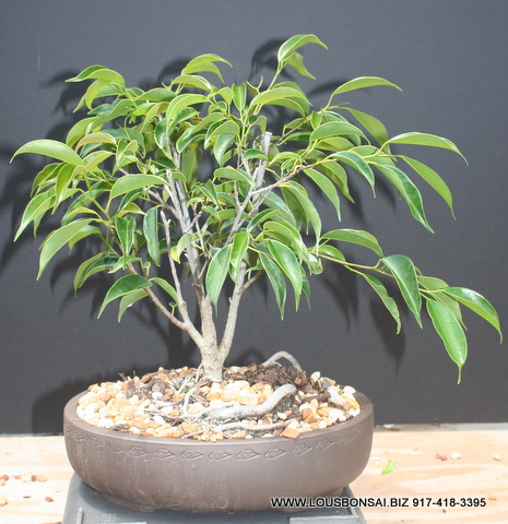 This ficus has been in training for about three years. The trunk was trained to coil. Approx 12+ inches tall and much taller than the image. Great for the beginner, low light and low care is needed. If you or someone is starting out in bonsai, this is a perfect beginner tree.